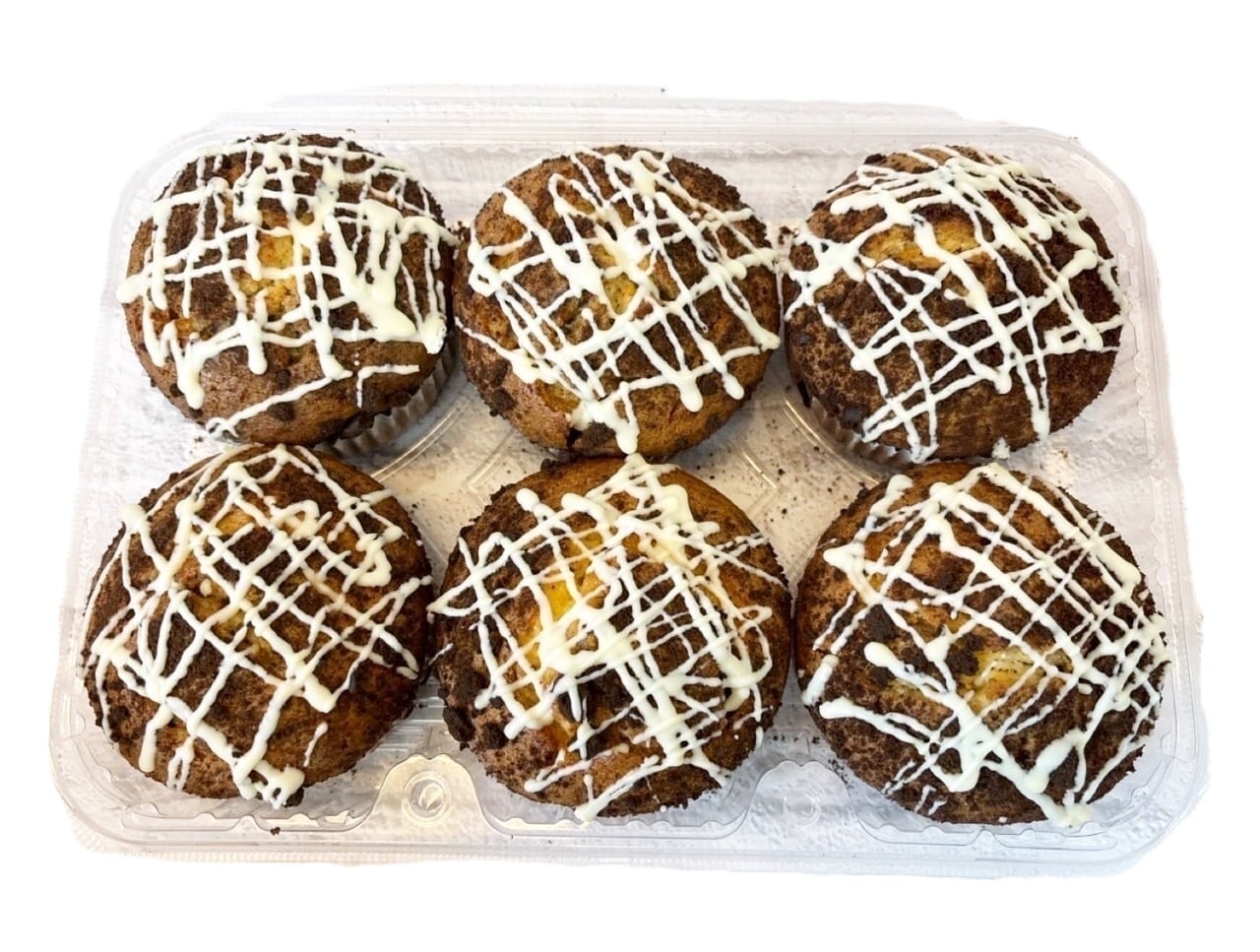 しっとりとしたプレーンマフィンに、ザクザク食感のココアクッキークランブルとホワイトチョコソースがたっぷりトッピングされた贅沢なマフィンです♪