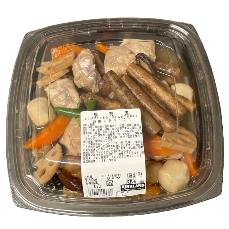 鶏肉、ごぼう・れんこん・里芋・しいたけ・人参・いんげんなど6種の野菜が大きくカットされ入っています。