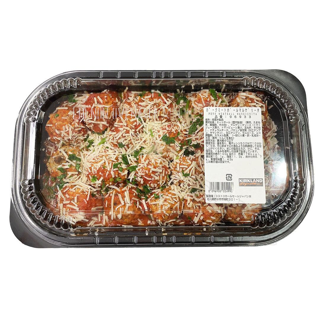 大きなミートボールにマルゲリータソースがたっぷり絡められ、チーズとパセリがトッピングされています。おつまみにもお弁当のおかずにもおすすめ!